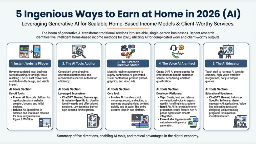 The boom of generative AI has opened up a plethora of ways for home-based entrepreneurs, changing the face of traditional services into ones which can be highly scalable, single-person businesses. A recent research has pointed out five intelligent home-based income methods for 2026, each mode harnessed by particular AI tools that not only take over complicated work but also provide client-worthy outputs.